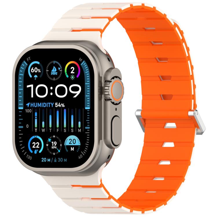 Correa de silicona bicolor magnética estilo melódica para Apple Watch de 46 mm / 49 mm / 45 mm / 44 mm (naranja estelar).