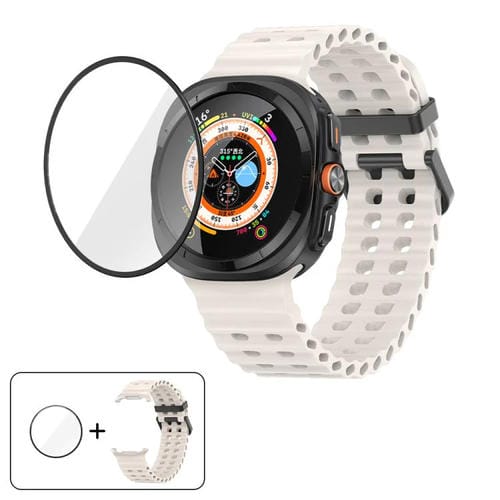 Correa de silicona con doble hebilla y película curva 3D para Samsung Galaxy Watch Ultra de 47 mm (luz de estrellas)