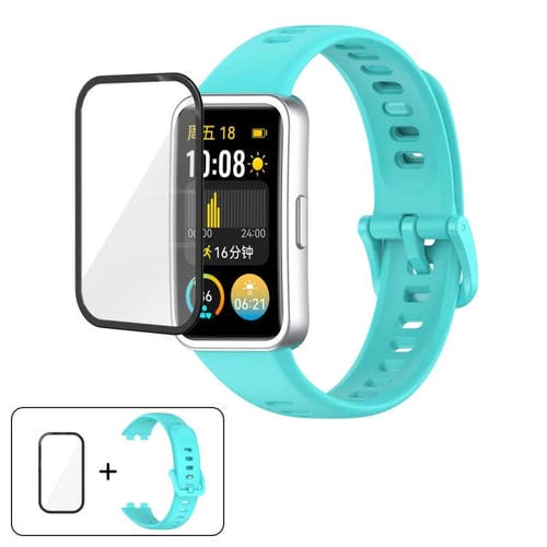 Correa de silicona con hebilla colorida y película curva 3D para Huawei Band 10/10 NFC (verde azulado)