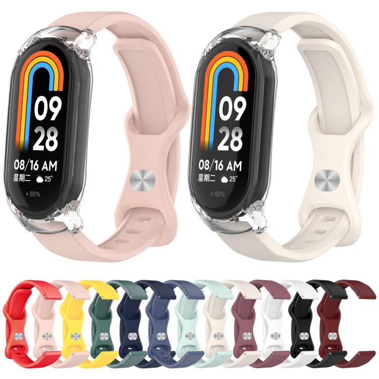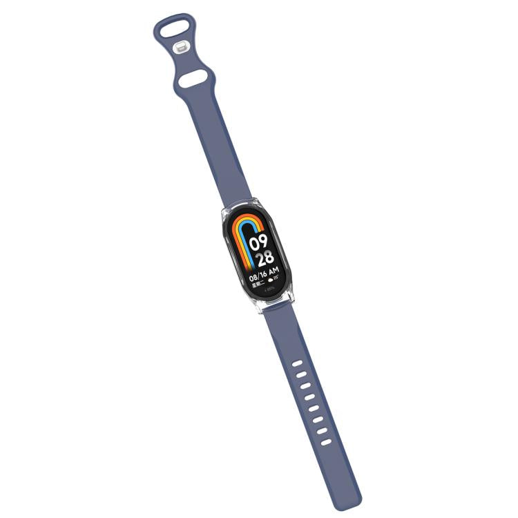 Correa de silicona con hebilla de mariposa para Xiaomi Smart Band 9/9 NFC con funda transparente (gris y azul)