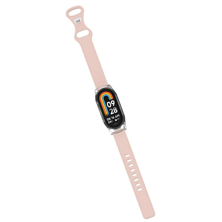 Correa de silicona con hebilla de mariposa y funda transparente para Xiaomi Smart Band 9/9 NFC (rosa claro)