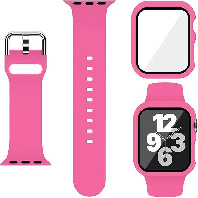 Correa de silicona con hebilla de pasador para Apple Watch Ultra 3/2/1 de 49 mm con funda de PC integrada (rosa)