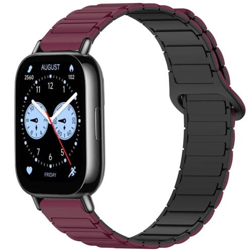 Correa de silicona con hebilla magnética de dos colores para Redmi Watch 5 Lite (vino tinto y negro)