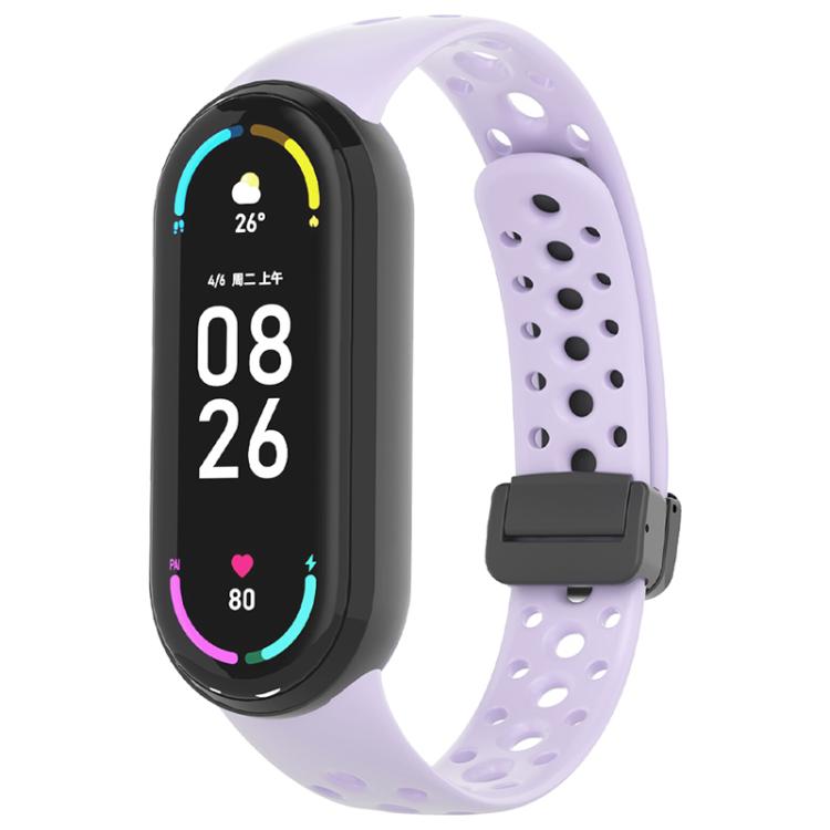 Correa de silicona con hebilla magnética negra para Xiaomi Smart Band con 10/9/8 agujeros redondos (morada)