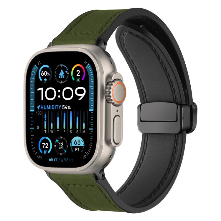 Correa de silicona con hebilla magnética para Apple Watch de 42, 44, 45, 46 y 49 mm xDfind con diseño de caballo loco (verde militar)
