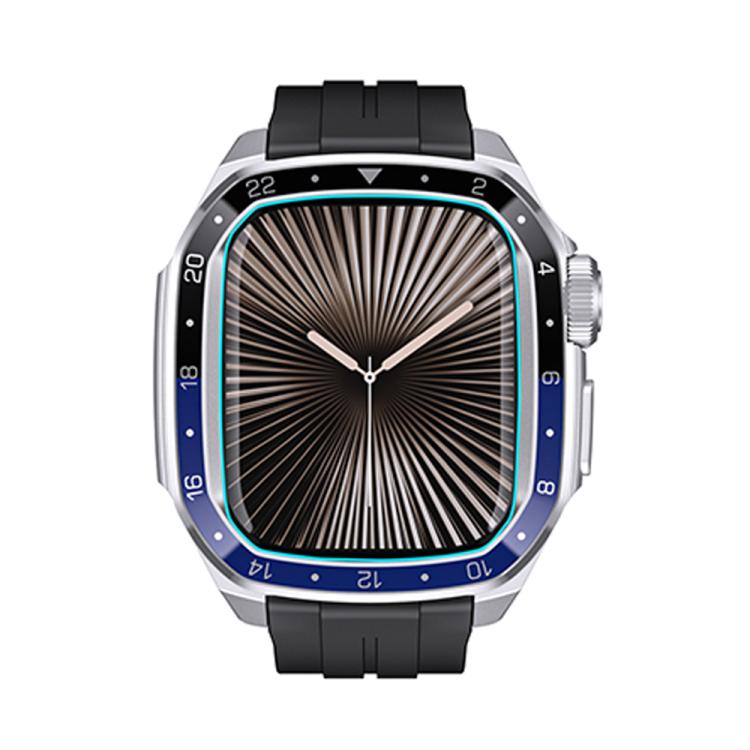 Correa de silicona con marco metálico integrado para Apple Watch Series 10 de 46 mm (marco plateado, esfera negra y azul)