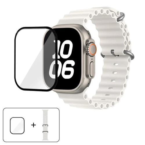 Correa de silicona con película curva 3D para Apple Watch Ultra 2/1 de 49 mm (color océano) (blanco)