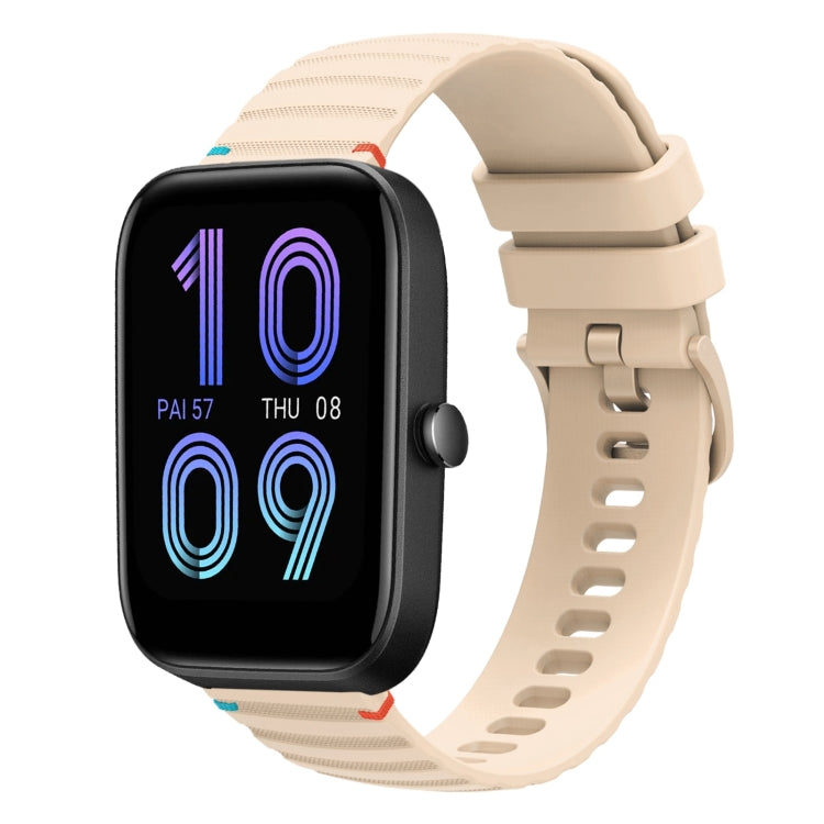 Correa de silicona Amazfit Bip 3 Pro 20mm con puntadas onduladas y puntos (Crema)
