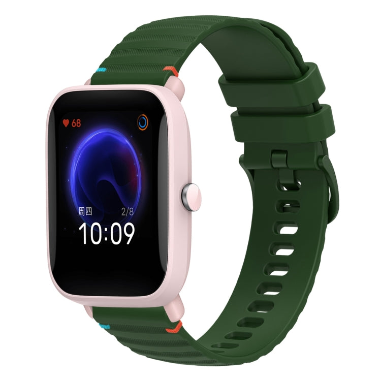 Correa Silicona Amazfit Bip U 20mm Puntadas Onduladas Puntos (Verde Militar)