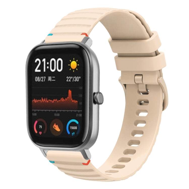 Correa de Silicona para Reloj Amazfit GTS 20mm con Puntadas Onduladas y Puntos (Crema)