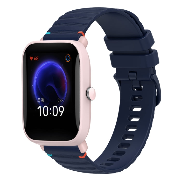 Correa de Silicona con Puntadas Onduladas y Puntos para Reloj Amazfit Pop Pro 20mm (Azul Marino)