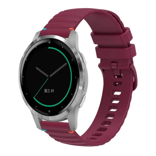 Correa de Silicona para Reloj Garmin Active S 18mm con Puntadas Onduladas y Puntos (Rojo Vino)