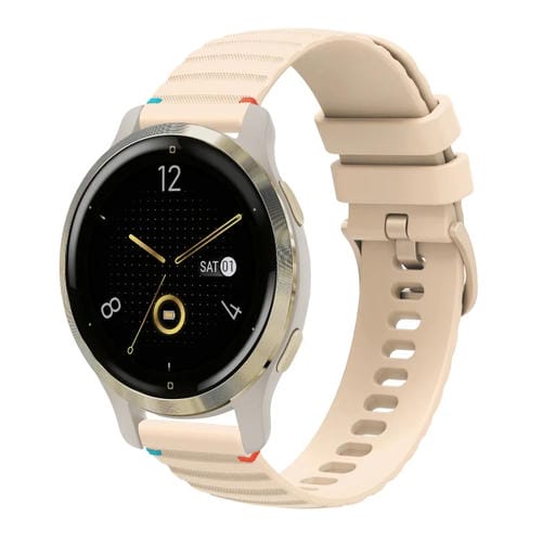 Correa de Silicona Garmin Venu 2S 18mm con Puntadas Onduladas y Puntos (Crema)