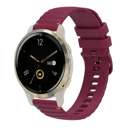 Correa de Silicona Garmin Venu 2S 18mm con Puntadas Onduladas y Puntos (Rojo Vino)