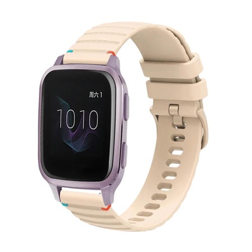 Correa de Silicona con Puntadas Onduladas y Puntos para Reloj Garmin Venu Sq 20mm (Crema)