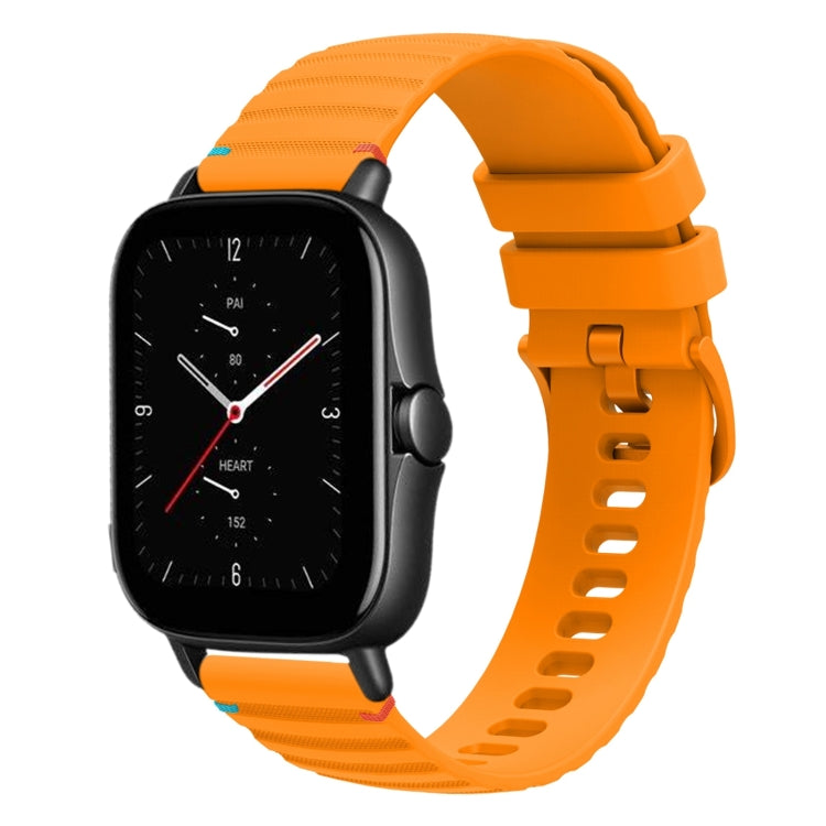 Correa de Silicona 20mm para Reloj Amazfit GTS 2E con Puntadas Onduladas y Puntos (Amarillo Ámbar)