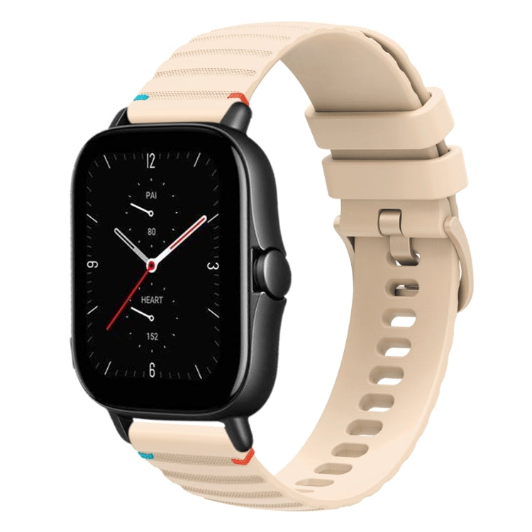 Correa de Silicona 20mm para Reloj Amazfit GTS 2E con Puntadas Onduladas y Puntos (Crema)