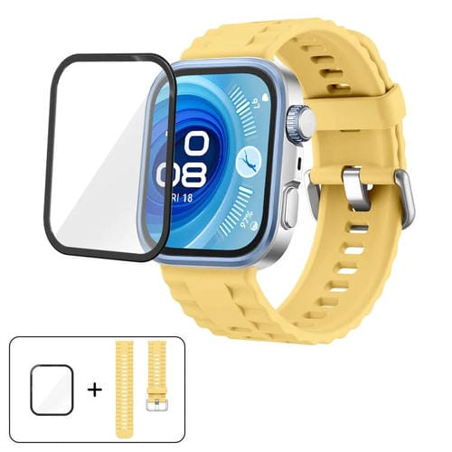 Correa de silicona de color sólido con película curva 3D para Huawei Watch Fit 4 (amarilla)
