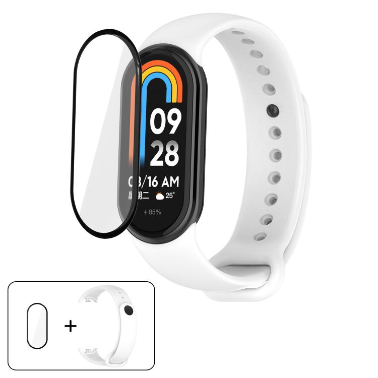 Correa de silicona de color sólido con película curva 3D para Xiaomi Smart Band 9/9 NFC (blanca)