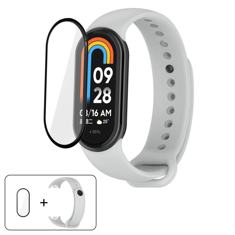 Correa de silicona de color sólido con película curva 3D para Xiaomi Smart Band 9/9 NFC (gris claro)