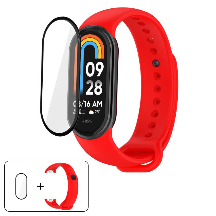 Correa de silicona de color sólido con película curva 3D para Xiaomi Smart Band 9/9 NFC (roja)