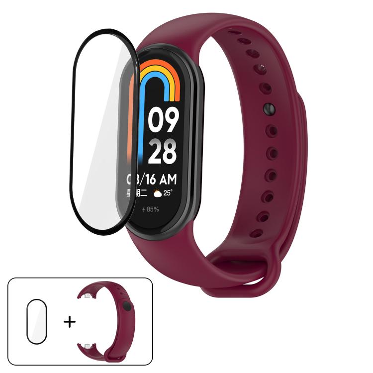 Correa de silicona de color sólido con película curva 3D para Xiaomi Smart Band 9/9 NFC (rojo vino)