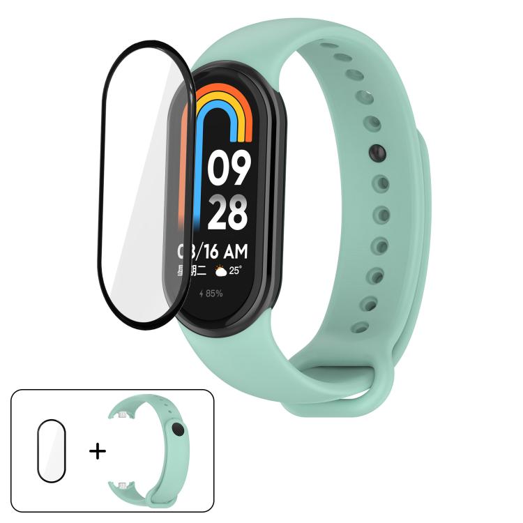 Correa de silicona de color sólido con película curva 3D para Xiaomi Smart Band 9/9 NFC (verde azulado)