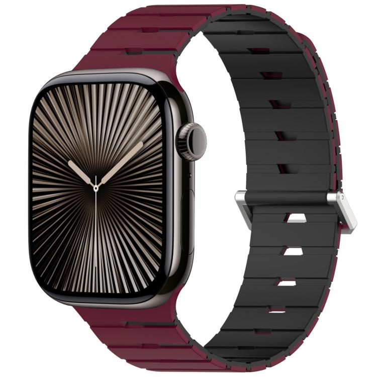 Correa de silicona magnética bicolor estilo melódica para Apple Watch de 42 mm / 41 mm / 40 mm / 38 mm (rojo vino y negro).