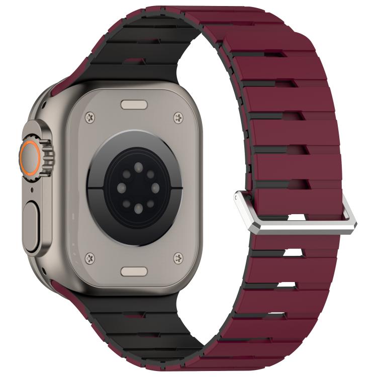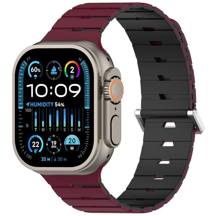 Correa de silicona magnética bicolor estilo melódica para Apple Watch de 46 mm / 49 mm / 45 mm / 44 mm (rojo vino y negro).