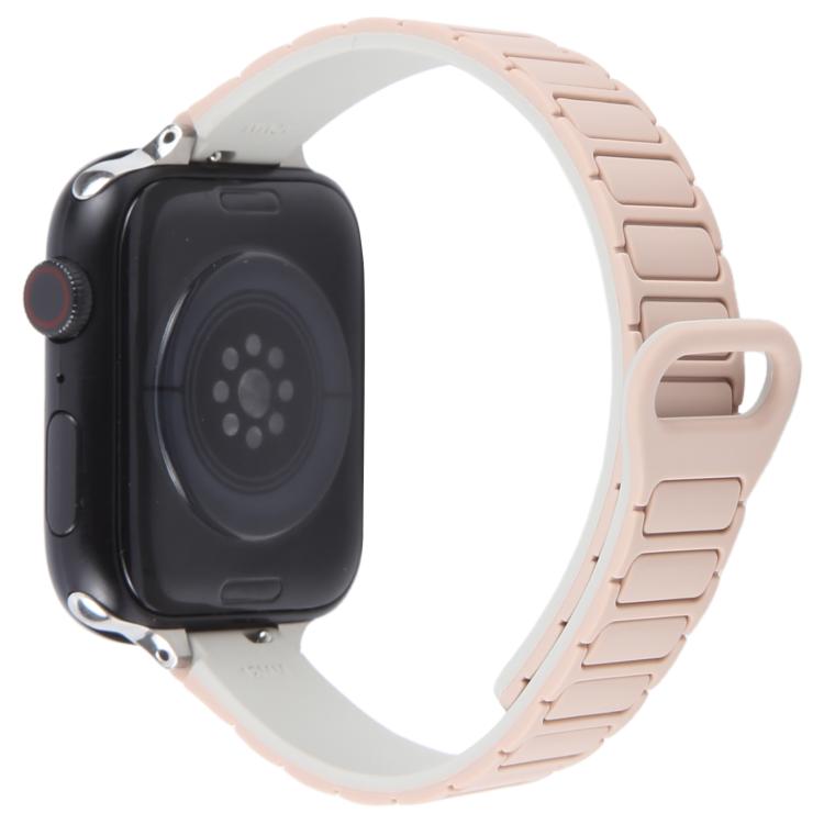 Correa de silicona magnética delgada en forma de I para Apple Watch de 42 mm, 41 mm, 40 mm y 38 mm (plata y té con leche Starlight)