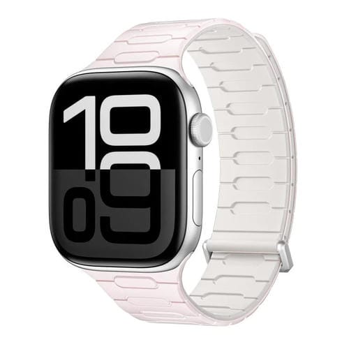 Correa de silicona magnética en forma de I para Apple Watch de 46 mm, 49 mm, 45 mm y 44 mm (rosa claro)
