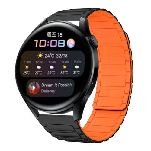 Correa de Silicona Magnética en Forma de I para Huawei Watch 3 22mm (Negra y Naranja)