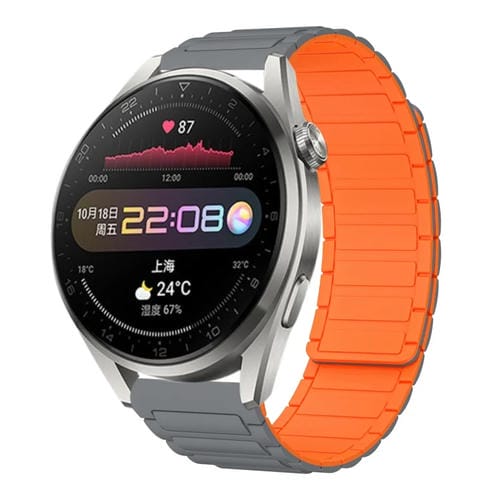 Correa de Silicona Magnética en Forma de I para Huawei Watch 3 Pro 22mm (Gris y Naranja)