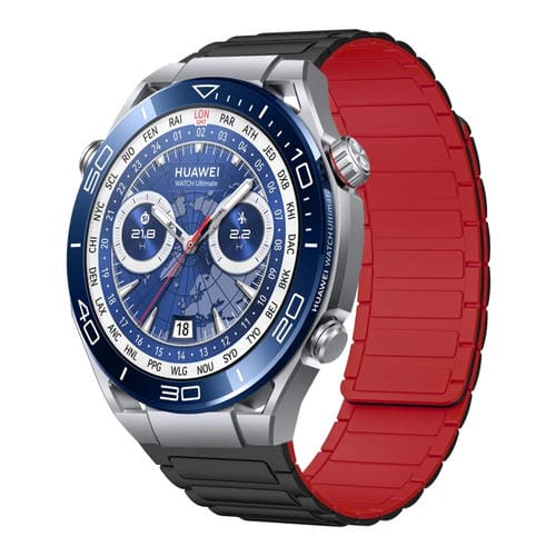 Correa de Silicona Magnética En Forma de I para Huawei Watch Ultimate 22mm (Negra y Roja)