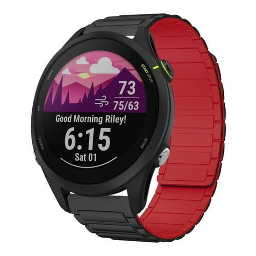 Correa de Silicona Magnética en Forma de I para Reloj Garmin Forerunner 255 22mm (Negra y Roja)