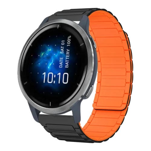 Correa de Silicona Magnética en Forma de I para Reloj Garmin Venu 2 22mm (Negra y Naranja)