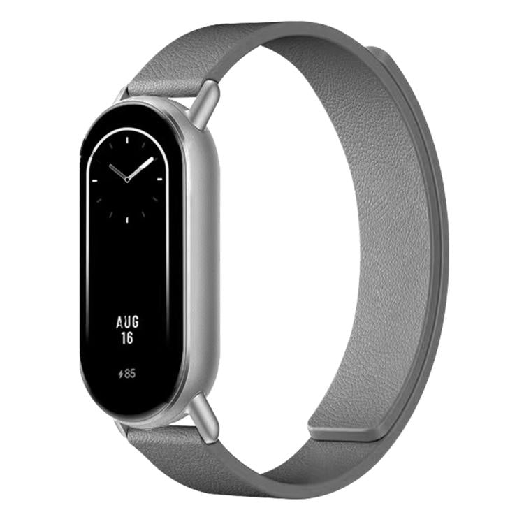 Correa de silicona magnética suave con textura de lichi para Xiaomi Smart Band 10/9/8 (gris)