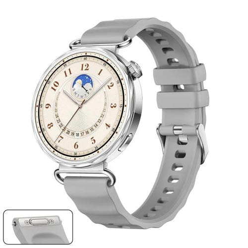 Correa de silicona para Huawei Watch GT 6 de 41 mm con botón de presión y liberación rápida, color gris, hebilla plateada