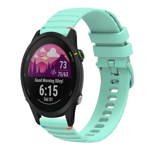 Correa de Silicona Garmin Forerunner 255 22mm con Puntadas Onduladas (Verde Azulado)