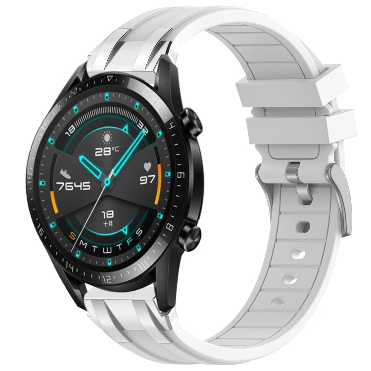 For Huawei Watch GT2 46mm 22mm Silicone Watch Band Strap with Quick Release Silver Buckle (White)