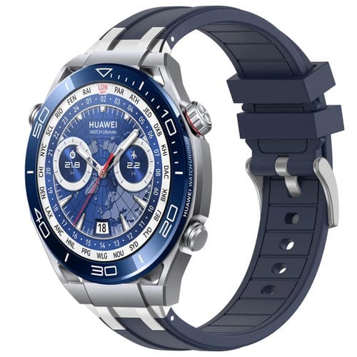 Huawei Watch Ultimate 22mm Silicone Watch Band Strap with Quick Release Silver Buckle (Navy Blue)