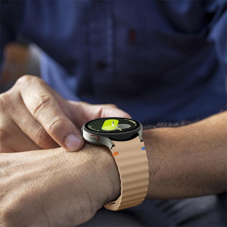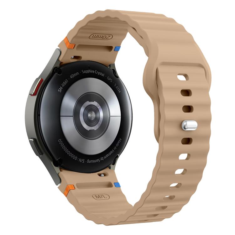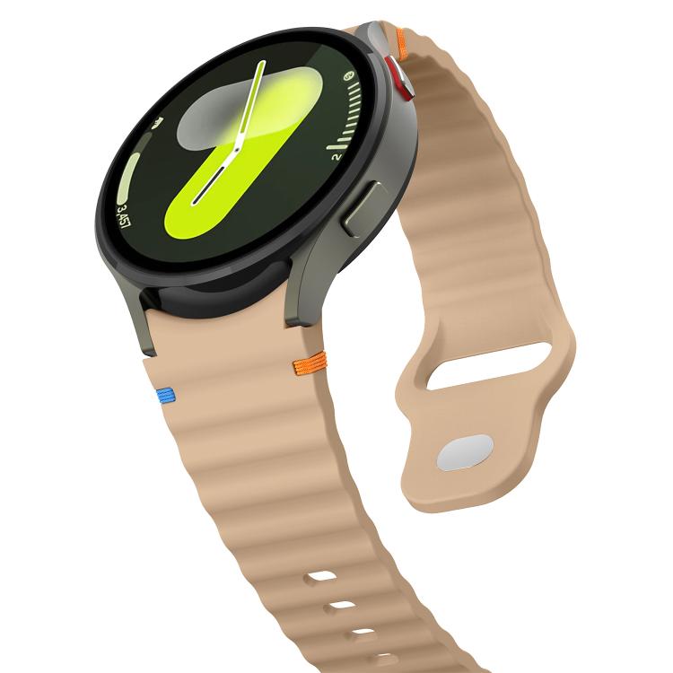 Correa de silicona para Samsung Galaxy Watch 7 (40 mm/44 mm), con costuras onduladas y hebilla invertida de 20 mm (té con leche)