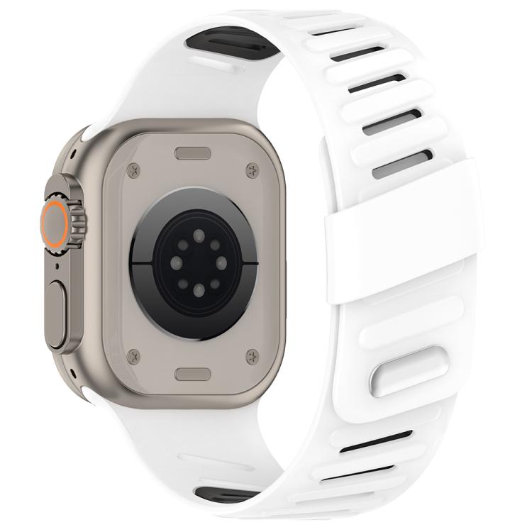 Correa de silicona transpirable bicolor con hebilla oblicua para Apple Watch de 46 mm, 49 mm, 45 mm y 44 mm (blanco y negro)