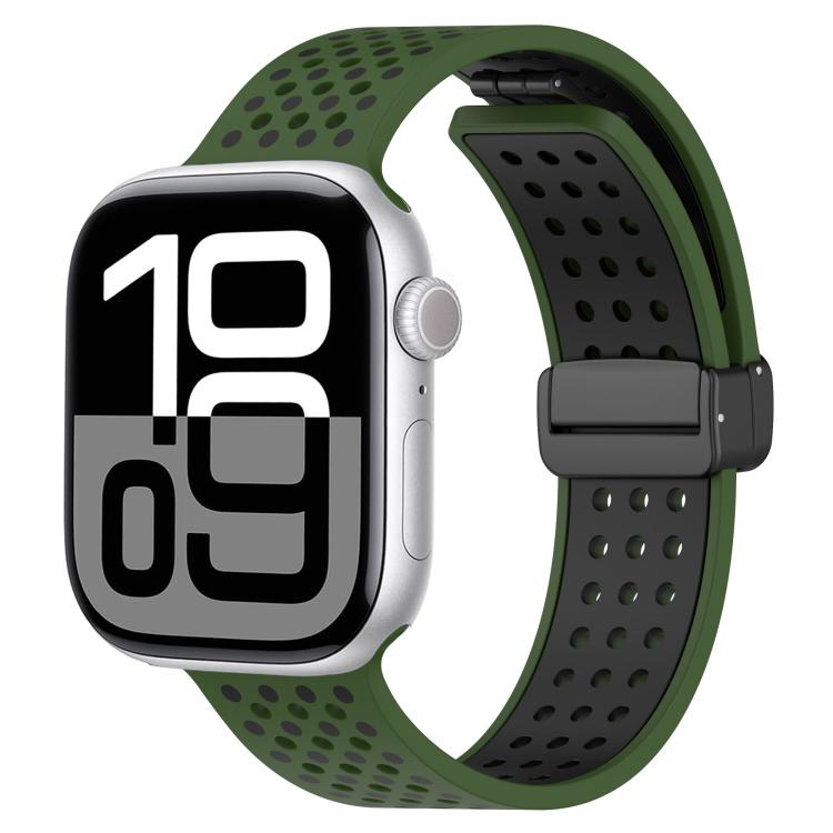 Correa de silicona transpirable con hebilla magnética para Apple Watch de 42 mm, 41 mm, 40 mm y 38 mm (verde militar y negro).