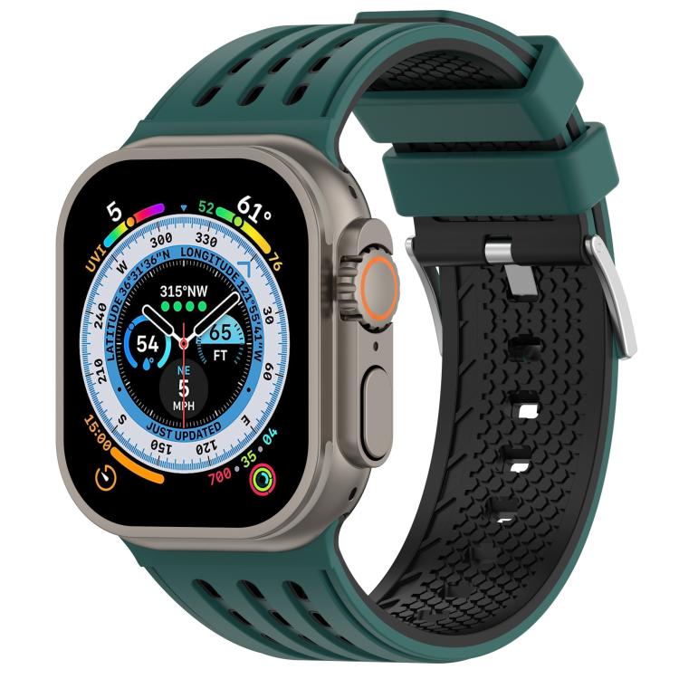 Correa de silicona transpirable de dos colores con agujeros verticales para Apple Watch de 46 mm, 49 mm, 45 mm y 44 mm (agujas de pino verde)
