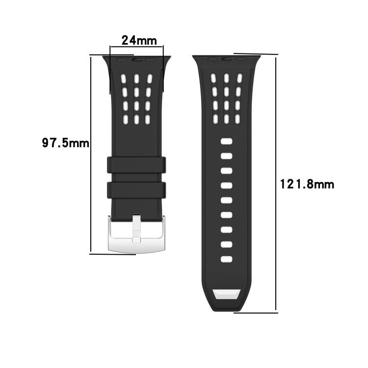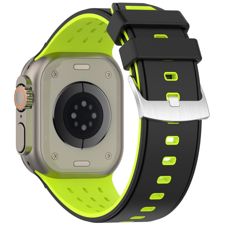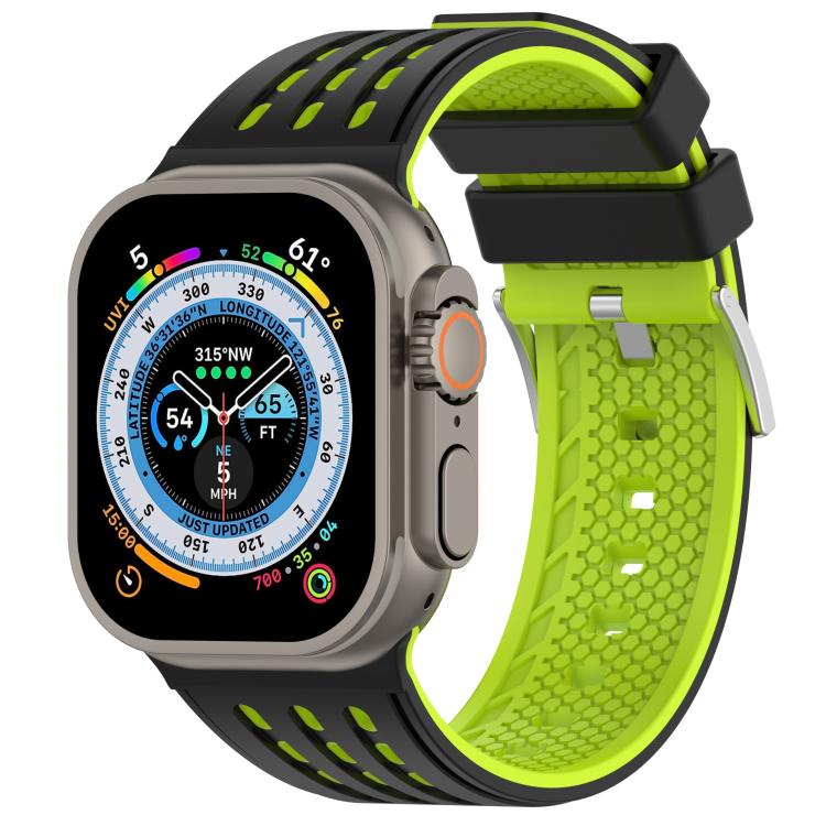 Correa de silicona transpirable de dos colores con agujeros verticales para Apple Watch de 46 mm, 49 mm, 45 mm y 44 mm (negro y verde)