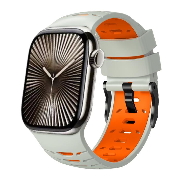 Correa de silicona trapezoidal de dos colores para Apple Watch de 46 mm, 49 mm, 45 mm y 44 mm (gris niebla y naranja)