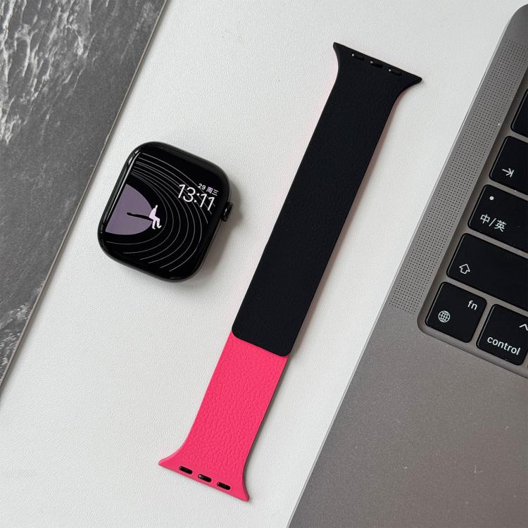 Correa magnética de silicona bicolor con textura de lichi para Apple Watch de 46 mm / 49 mm / 45 mm / 44 mm (Peonía negra)