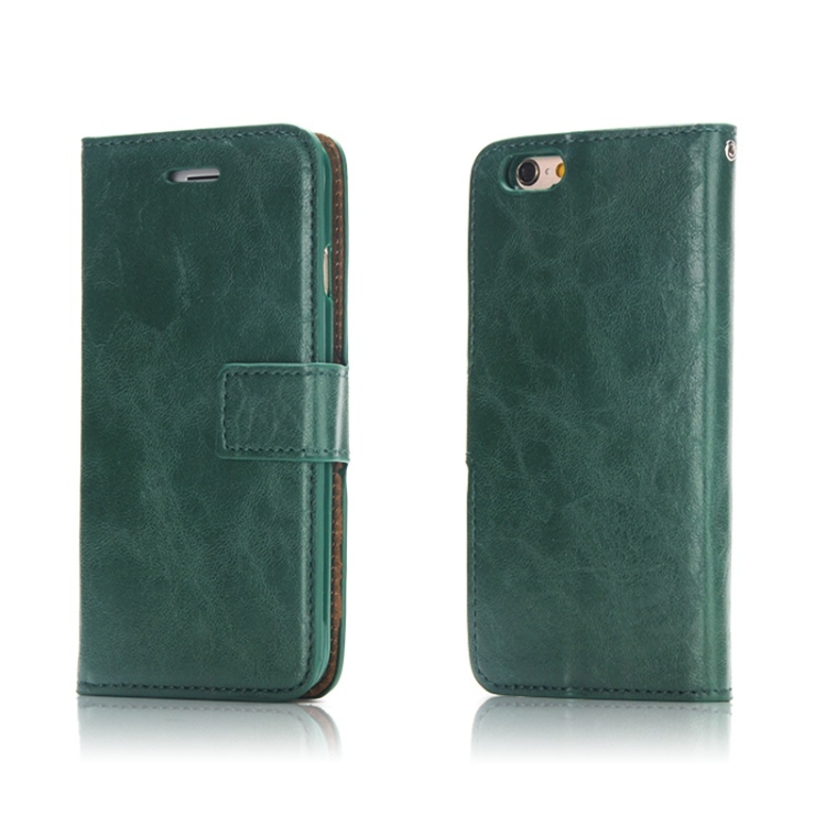 Funda de Cuero Crazy Horse para iPhone 6 / 6S con Soporte, Ranuras y Billetera (Verde)