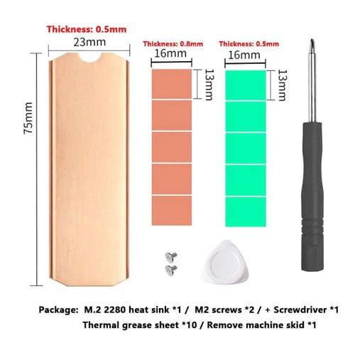 • 1x Disipador de Calor SSD de Cobre Puro Finalcool M.2 2280 para Consolas de Juegos, Portátiles y Minihosts